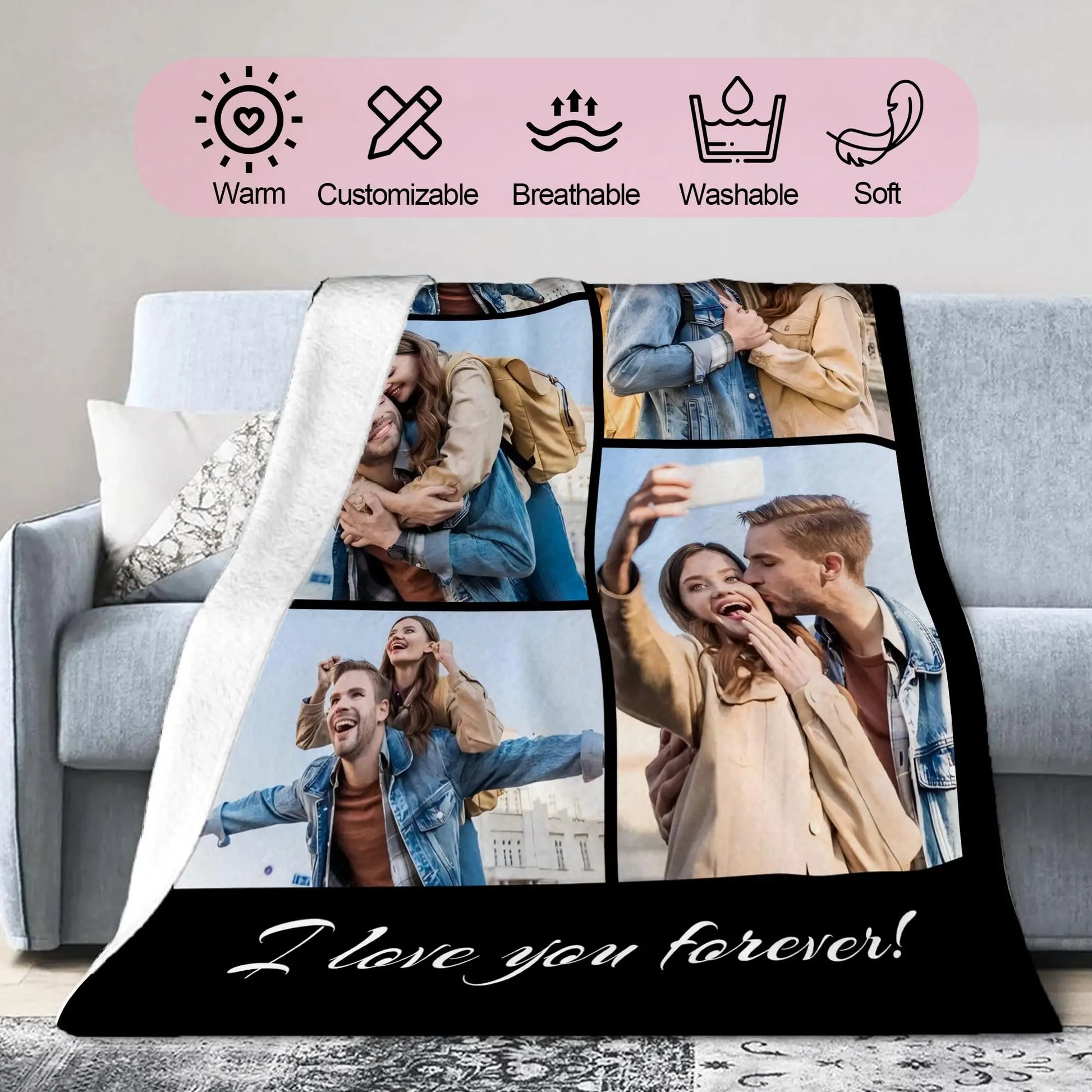 1pc Customized Blanket Your Design Logo Family Photo Print Warm Smooth Blanket Custom for Lover Dad Mom for Winter New Year Gift